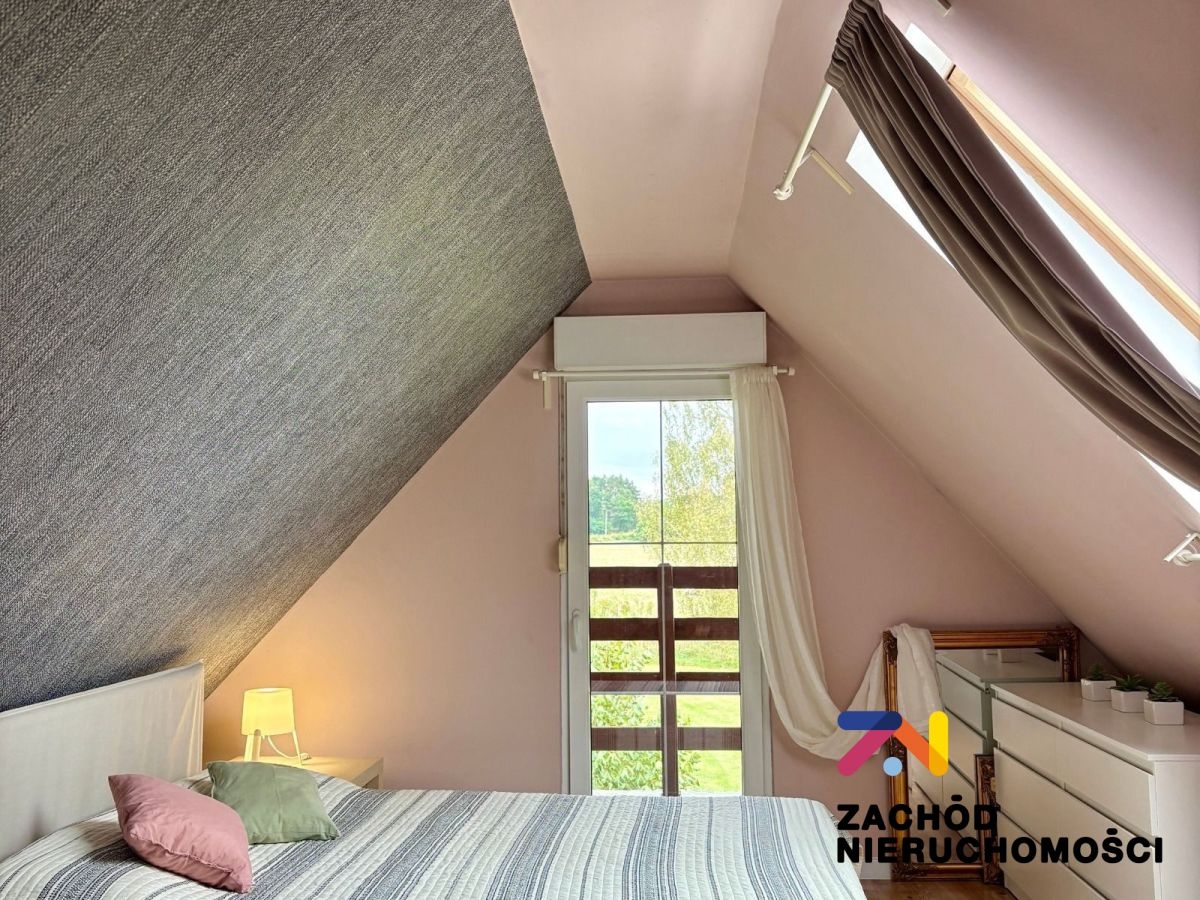 - Poddasze: sypialnia z balkonem otwartym na malowniczą okolicę oraz niewielki dodatkowy pokój.