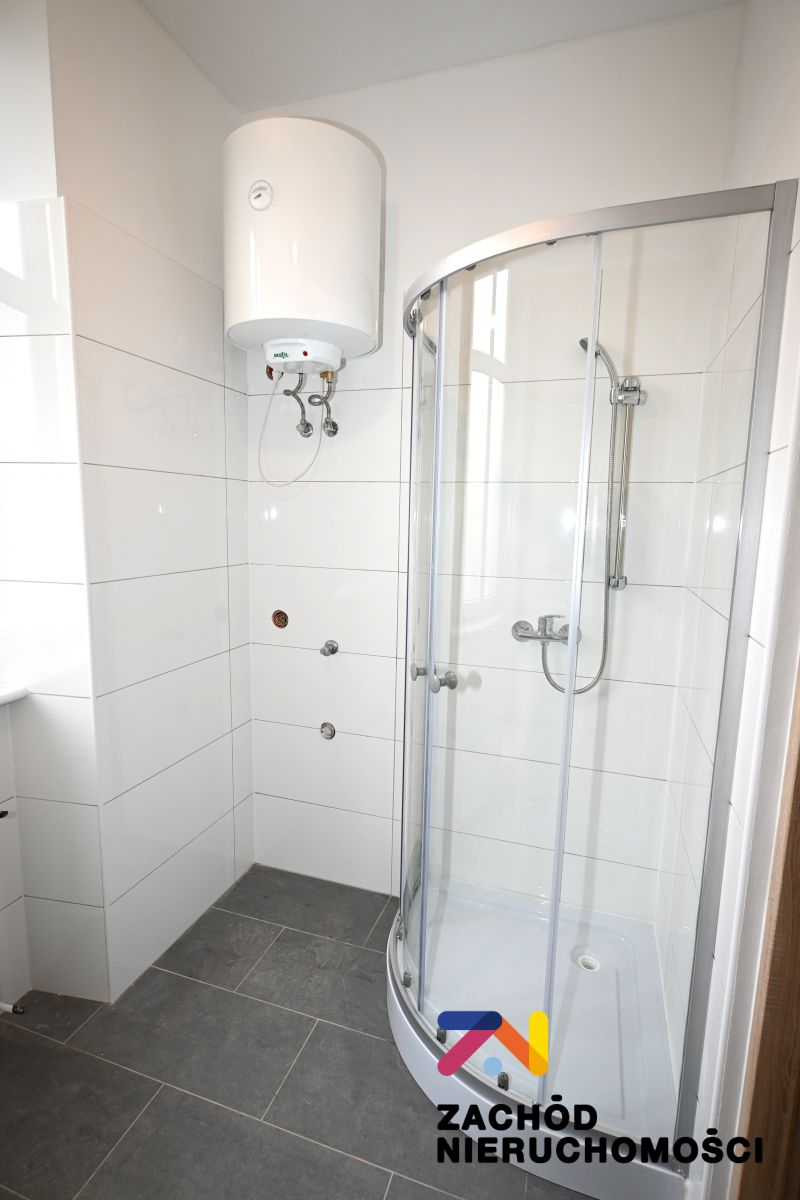 - łazienka wyposażona w kafelki, armaturę sanitarną, kabinę prysznicową oraz bojler elektryczny
