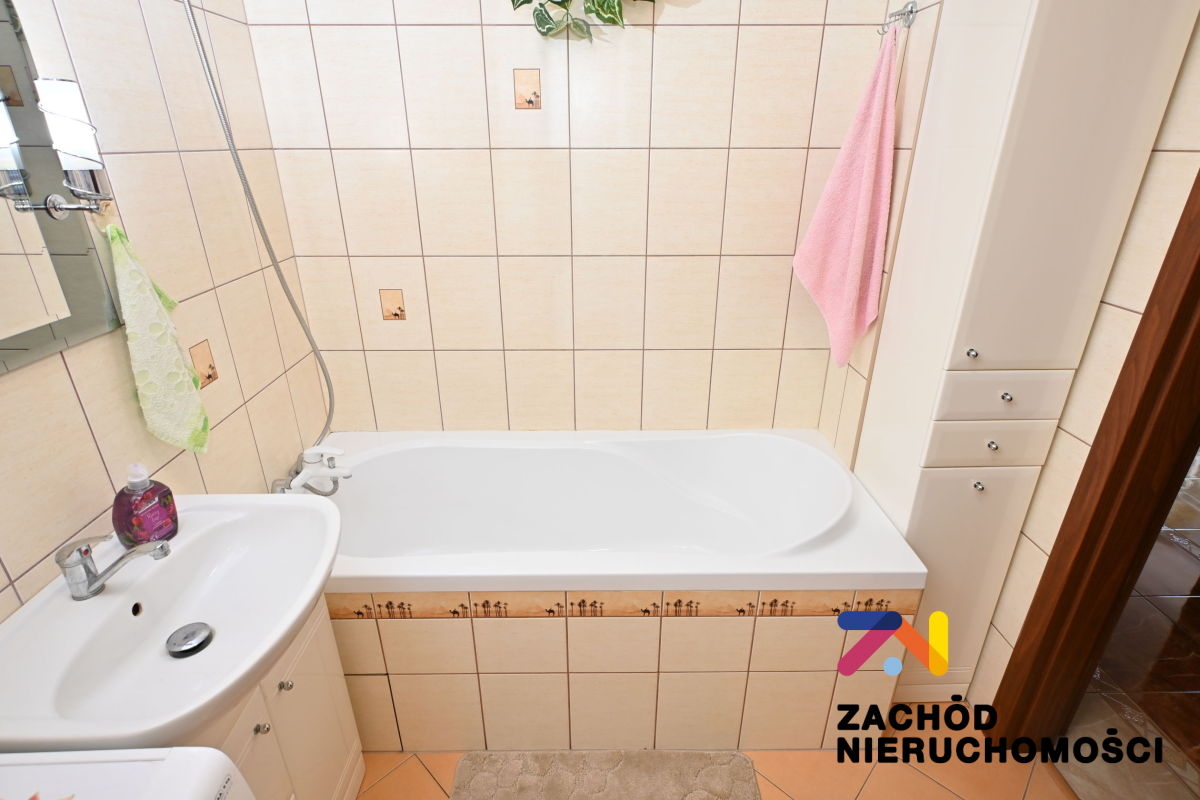 Budynek z 2008 roku, ocieplony. Mieszkanie w w bardzo dobrym stanie technicznym. Ściany gładzone i malowane. Na podłogach panele i płytki w zależności od pomieszczenia. Okna PCV z roletami zewnętrznymi. Kuchnia umeblowana i wyposażona w lodówkę, zmywarkę, piekarnik elektryczny, płytę grzewczą. W łazience wanna i pralka.