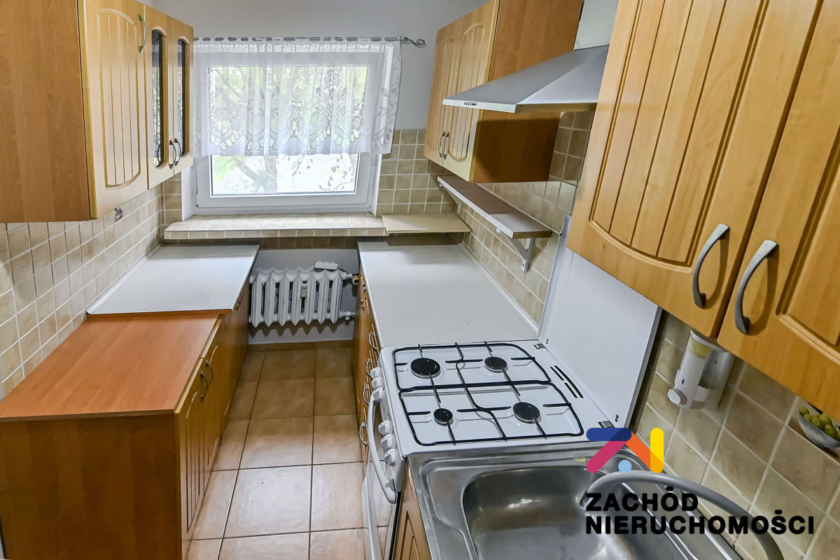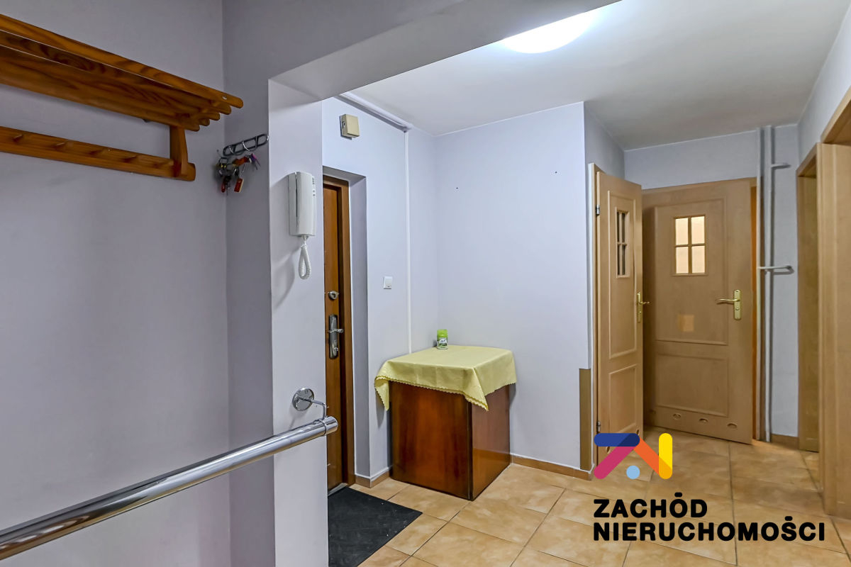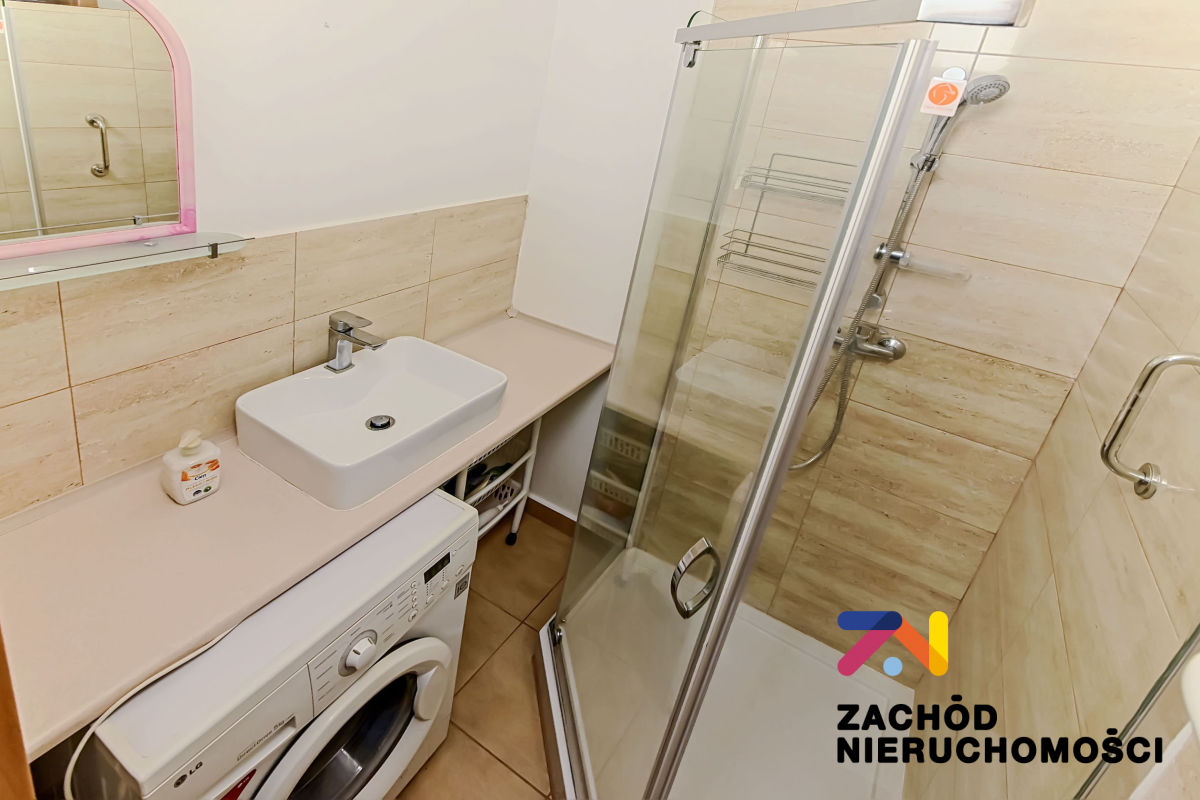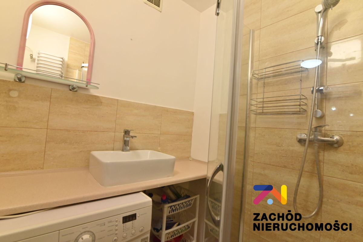 Budynek ocieplony po termomodernizacji, w bardzo dobrym stanie technicznym. Mieszkanie po częściowym remoncie, ściany gładzone i malowane, na podłodze panele i płytki w zależności od pomieszczenia. Okna PCV, drzwi drewniane. Kuchnia umeblowana i wyposażona: lodówka, piekarnik, płyta gazowa. W łazience kabina prysznicowa. Pozostałe umeblowanie do uzgodnienia.