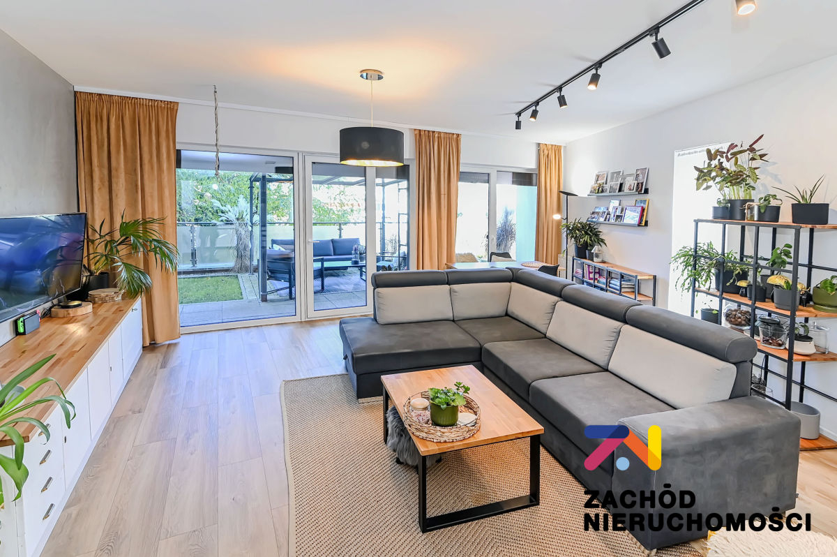 • Na sprzedaż atrakcyjny, przestronny, wykończony w nowoczesnym stylu apartament o powierzchni ok. 91 m2 usytuowany na parterze niskiego budynku z 2019 roku. Mieszkanie jasne, przestronne i bardzo komfortowe. Do mieszkania przynależy bardzo duży taras z ogródkiem o pow. 65 m2 oraz piwnica.