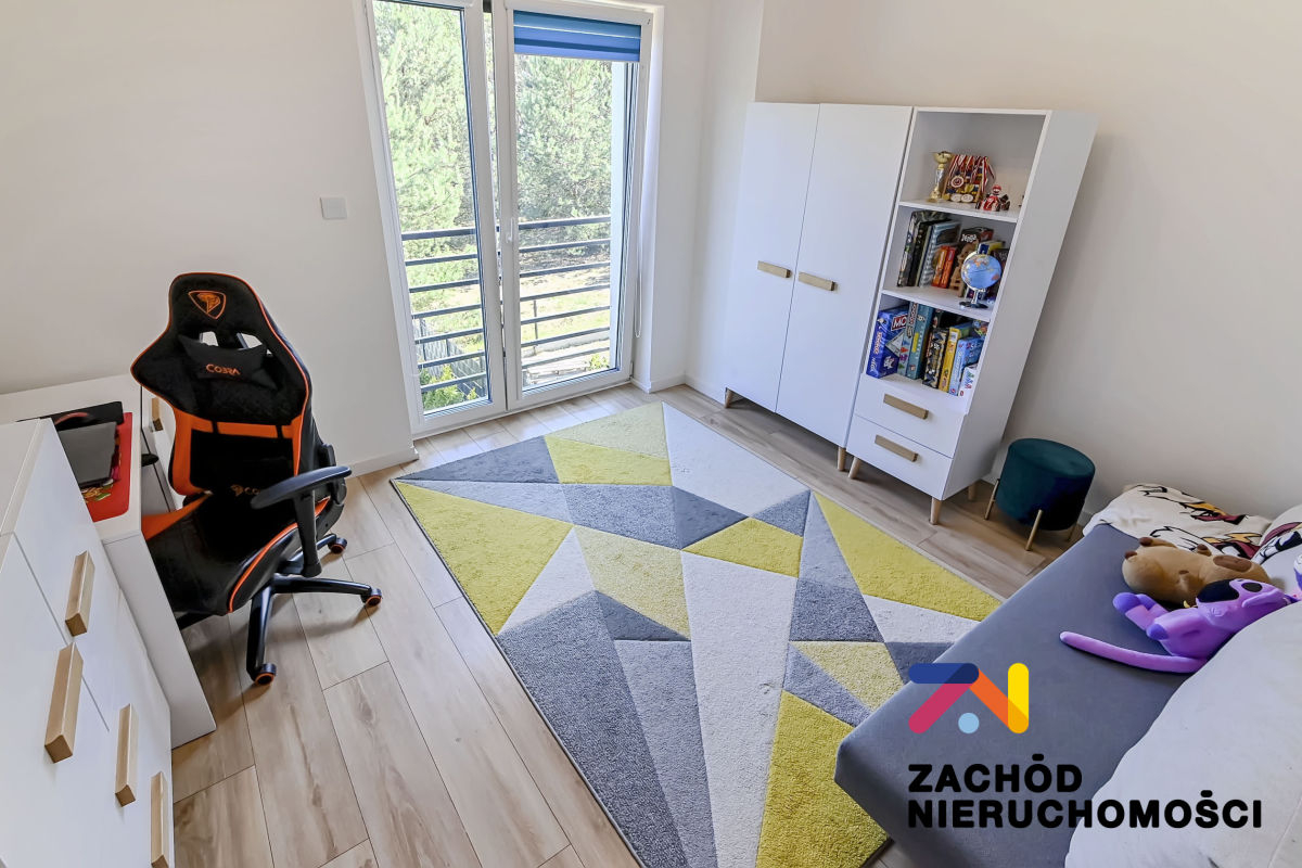 Budynek oddany do użytku w 2022 roku, wybudowany z bloczków betonu komórkowego Ytong. Ściany budynku ocieplone styropianem. Okna PCV z roletami zewnętrznymi (elektryczne sterowane z telefonu) i wewnętrznymi, główne okno tarasowe rozsuwane. Ściany gładzone i malowane, na podłogach panele i płytki w zależności od pomieszczenia. W łazience na parterze prysznic na piętrze wanna. Kuchnia umeblowana i wyposażona: lodówka w zabudowie, piekarnik elektryczny, zmywarka, płyta indukcyjna, okap. W wiatrołapie szafa w zabudowie oraz na piętrze w sypialni duża garderoba. Pozostałe umeblowanie do uzgodnienia.