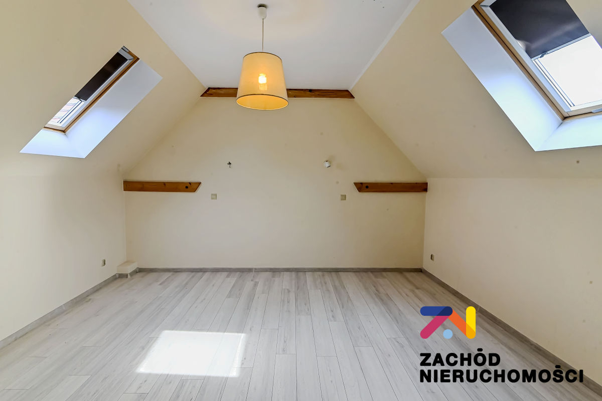 Wszystkie okna trzyszybowe w kolorze złoty dąb, podłogi w pokojach wyłożone deską barlinecką, w pozostałych pomieszczeniach płytki. Ściany częściowo tapetowane, częściowo malowane. Wymieniona instalacja elektryczna i wodno-kanalizacyjna. Dom ogrzewany gazem, co zapewnia ekonomiczne i komfortowe użytkowanie.