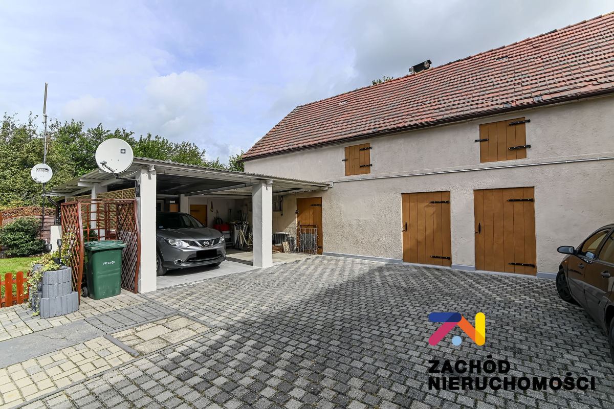 Działka o powierzchni 1000 m jest w pełni ogrodzona, wyposażona w bramę wjazdową na pilota - istnieje możliwość wykonania drugiego wjazdu od asfaltowej drogi. Na terenie znajdują się liczne nasadzenia, budynek gospodarczy, altanka oraz wyłożona kostką brukową część posesji, tworząca idealne miejsce na relaks i spotkania.