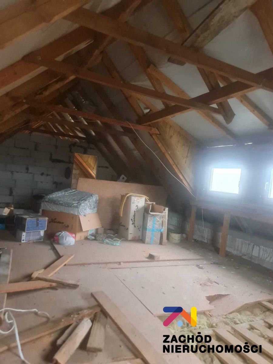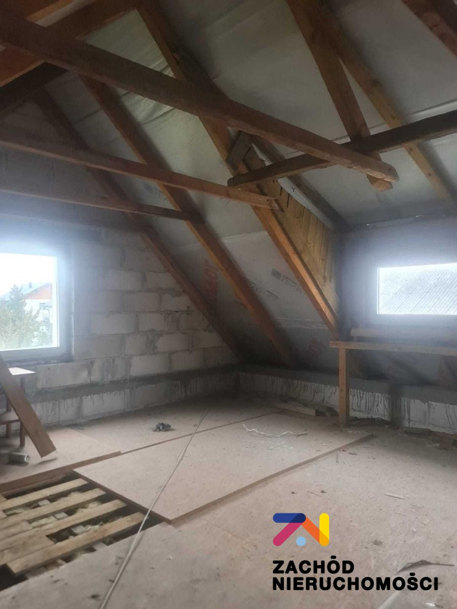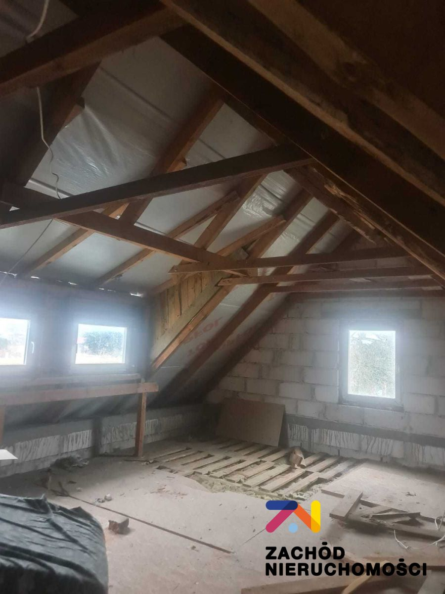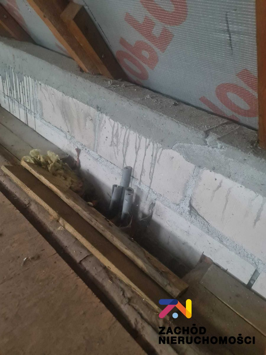 Na poddaszu okna dachowe. Dach przykryty blachodachówką. Grzejniki panelowe.