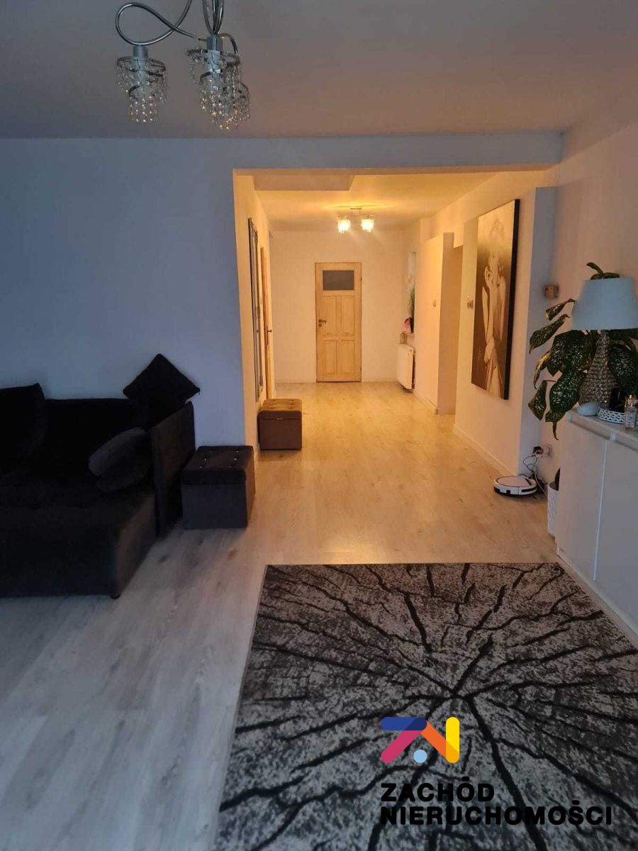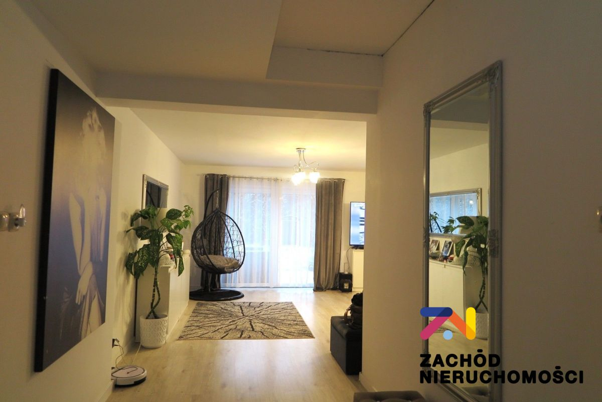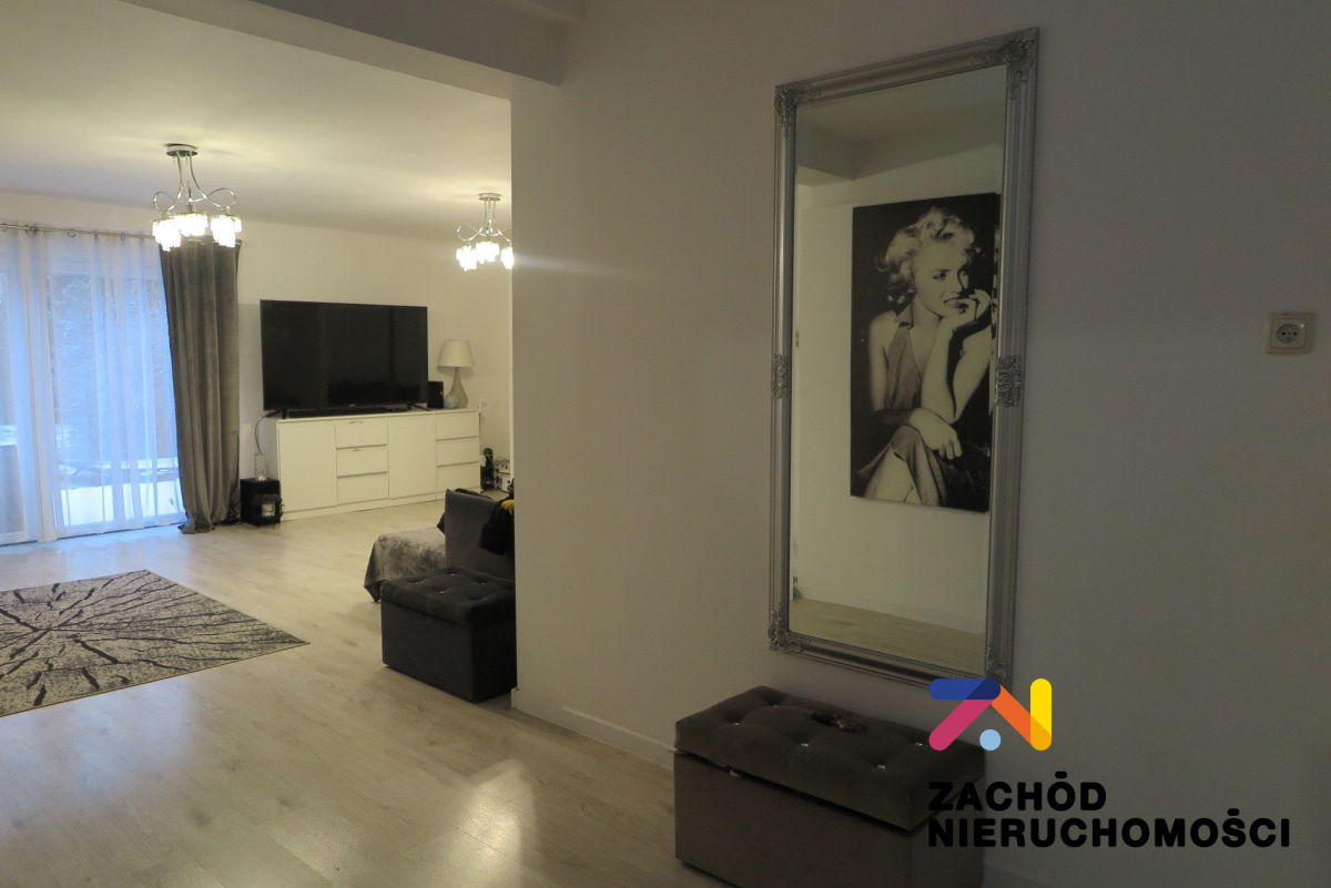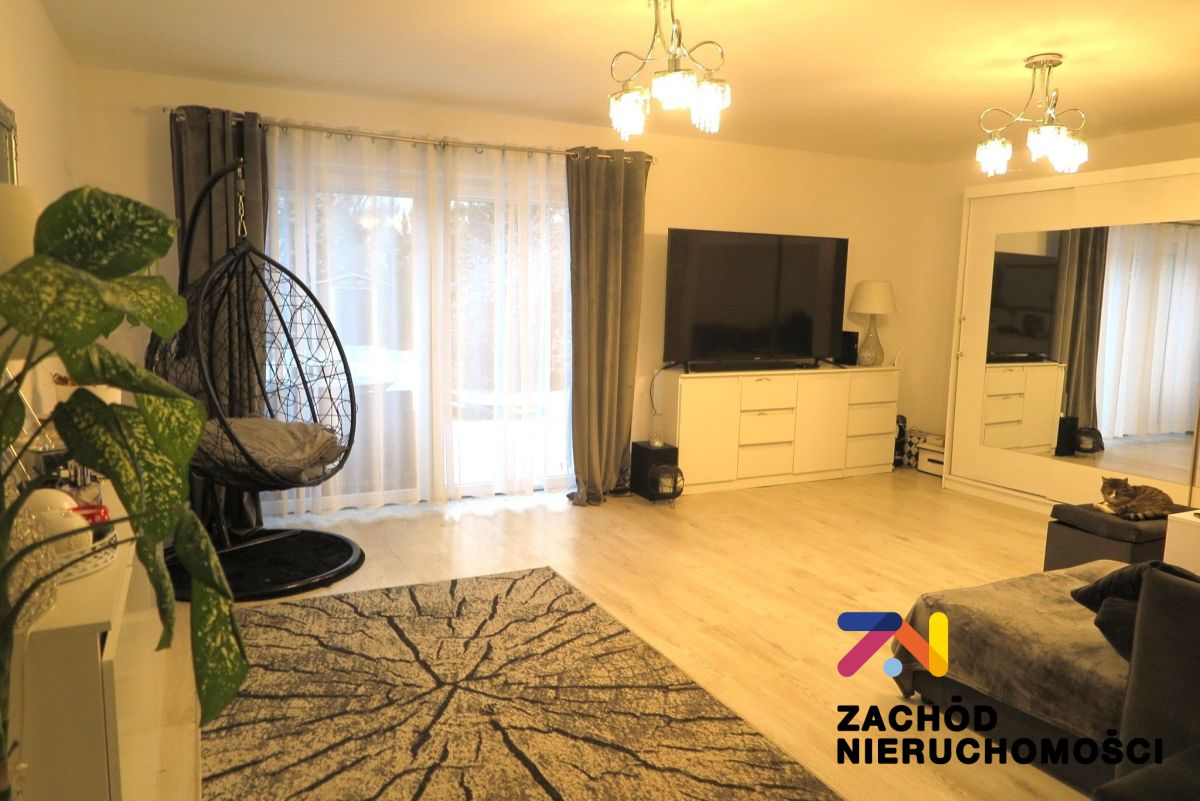 - przestronny salon 32,55m2 z przeszkleniem i wyjściem nataras. Na podłodze panele drewnopodobne.