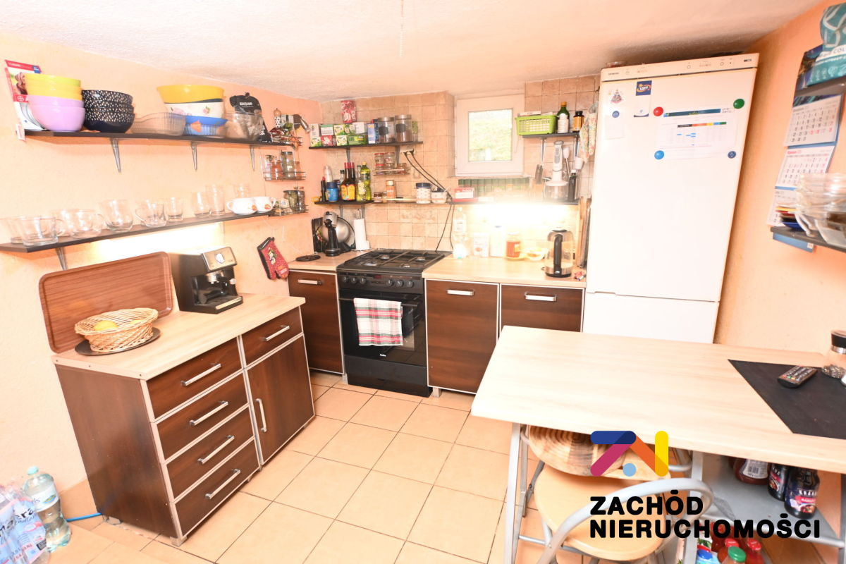 Budynek z lat 90-tych, budowany z cegły grubości 24 cm, strych ocieplony styropianem grubości 10 cm. Okna PCV, na podłogach panele i płytki w zależności od pomieszczenia. W łazience kabina prysznicowa, kuchnia umeblowana i wyposażona- lodówka, piekarnik elektryczny z płytą gazową, w salonie kominek. Pozostałe umeblowanie do uzgodnienia.