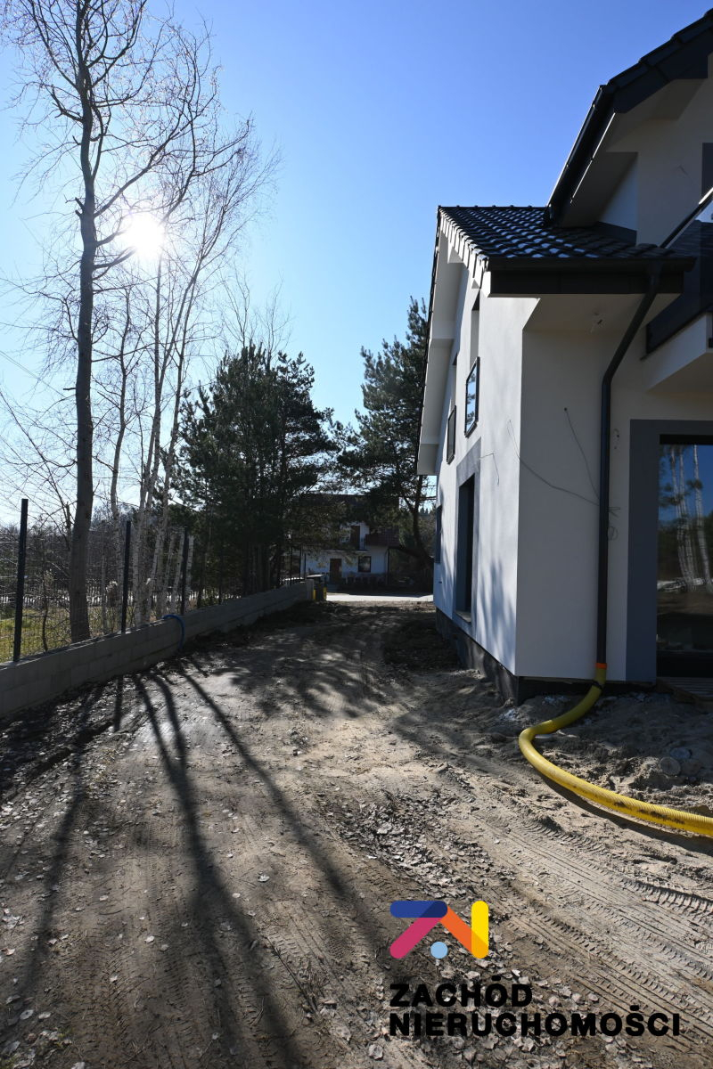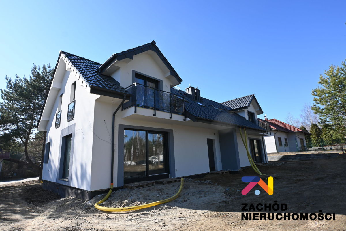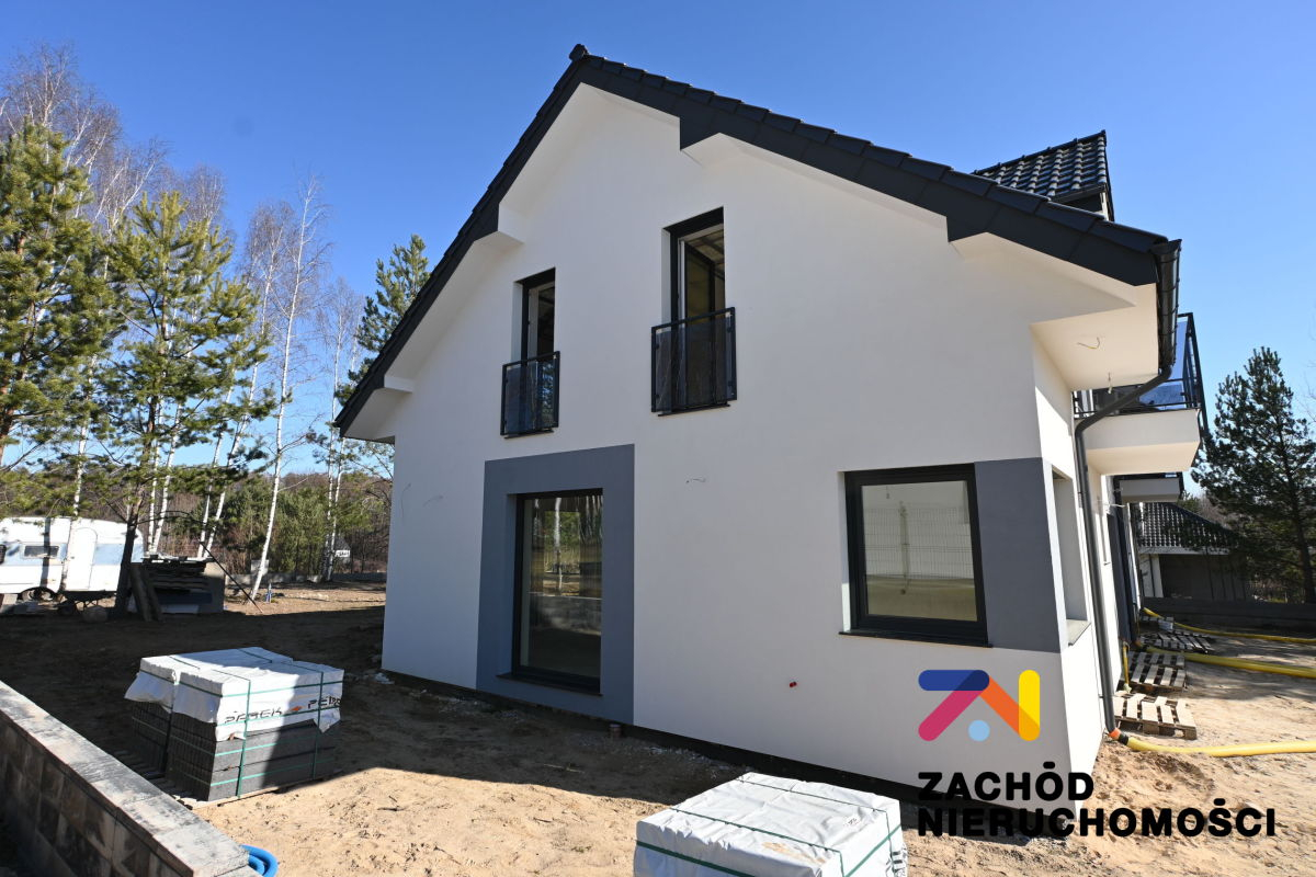 Budynek obecnie wykańczany do stanu deweloperskiego z wysokiej jakości materiałów budowlanych. Murowany z bloczków komórkowych Ytong, ocieplony styropianem, ściany kryte białym tynkiem strukturalnym, posadzki betonowe. Okna PCV- na parterze okna firmy Salamander Blue Evolution z roletami zewnętrznymi, na poddaszu okna Velux. Dach dwuspadowy kryty dachówką glazurowaną.