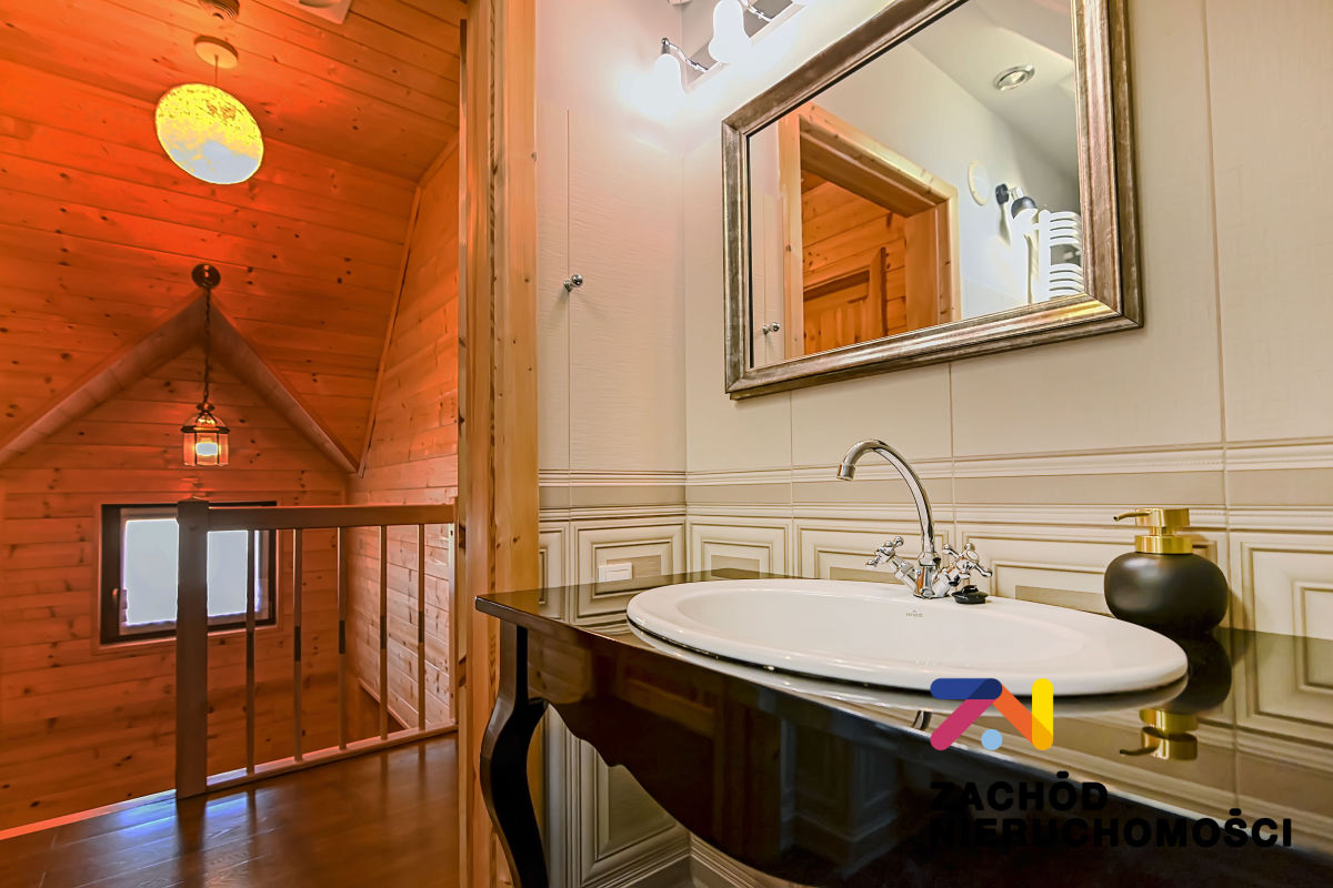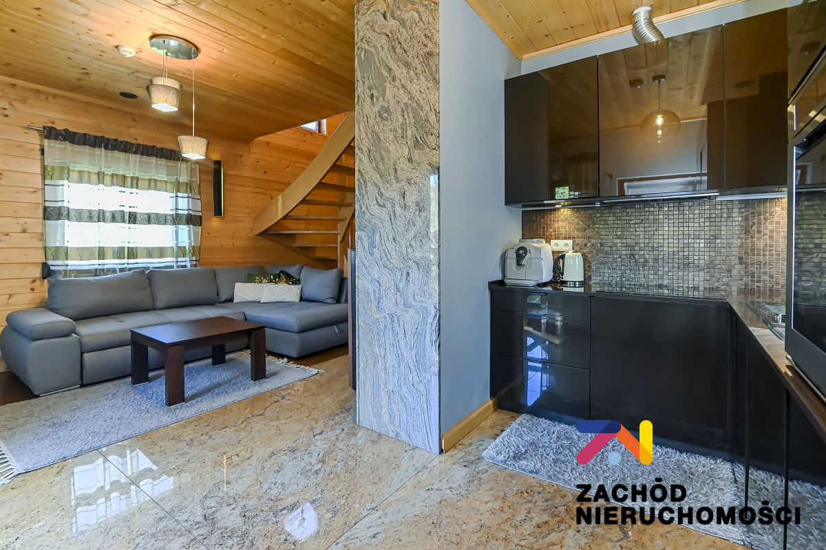 Wnętrze to połącznie tradycyjnego drewna z nowoczesnym designem. Dom sprzedawany jest z pełnym, luksusowym umeblowaniem oraz sprzętem AGD klasy Premium.
