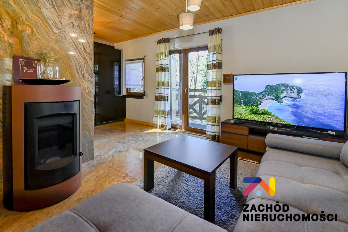 Salon z Kominkiem: Przytulna strefa wypoczynkowa z bezpośrednim wyjściem na nowoczesny, rozległy taras (odnowiony 3 lata temu).