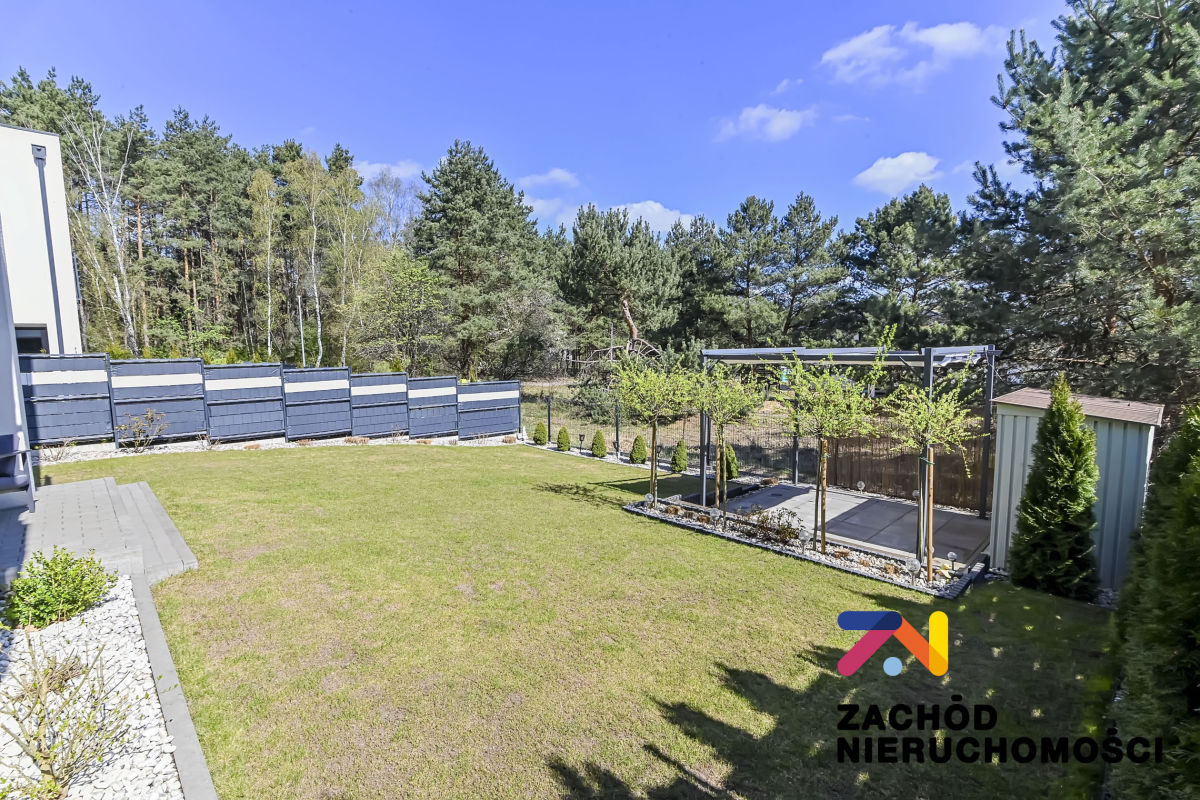 -Strefa ogrodowa/ relaksacyjna- wyjście na zadaszony taras od strony salonu, obszar działki wyłożony trawą, dodatkowo liczne nasadzenia. Wygospodarowane miejsce na np. basen czy dodatkową strefę relaksu z pergolą ogrodową. Działka w całości ogrodzona.