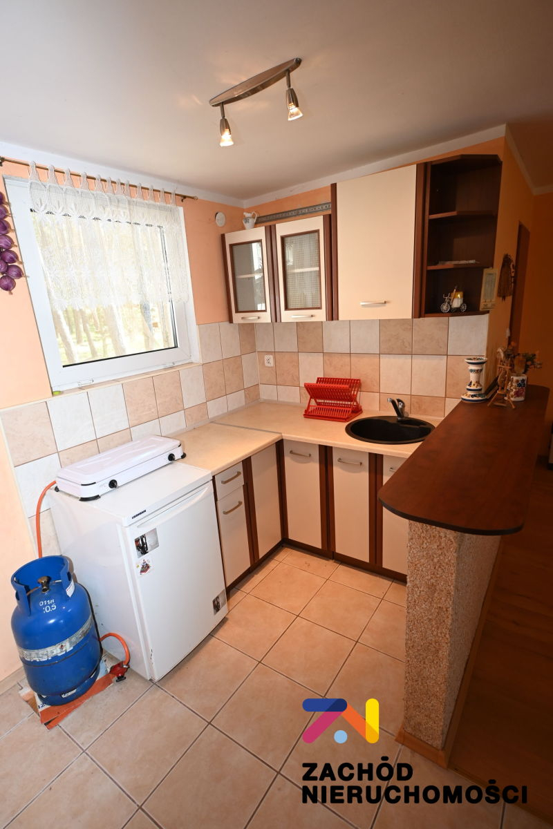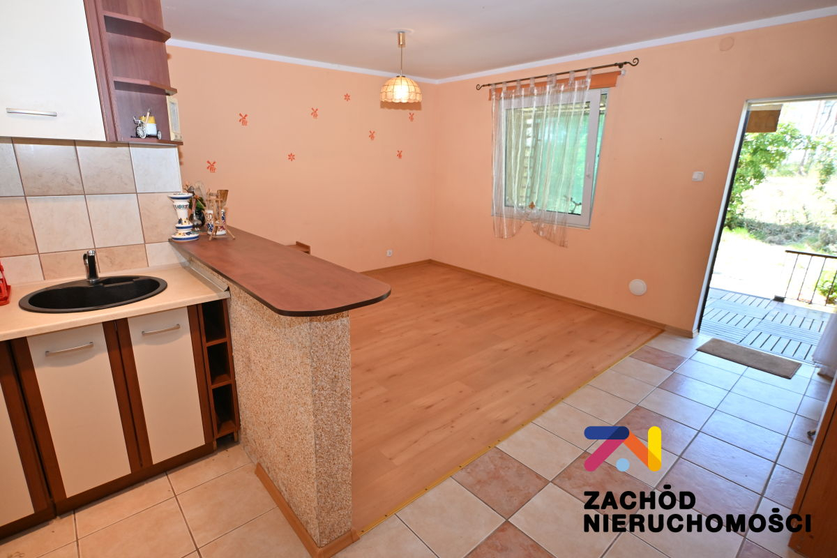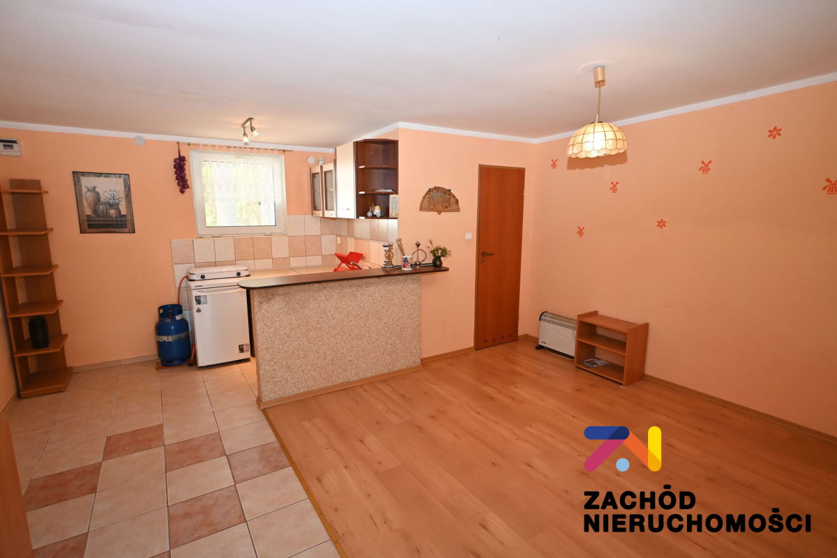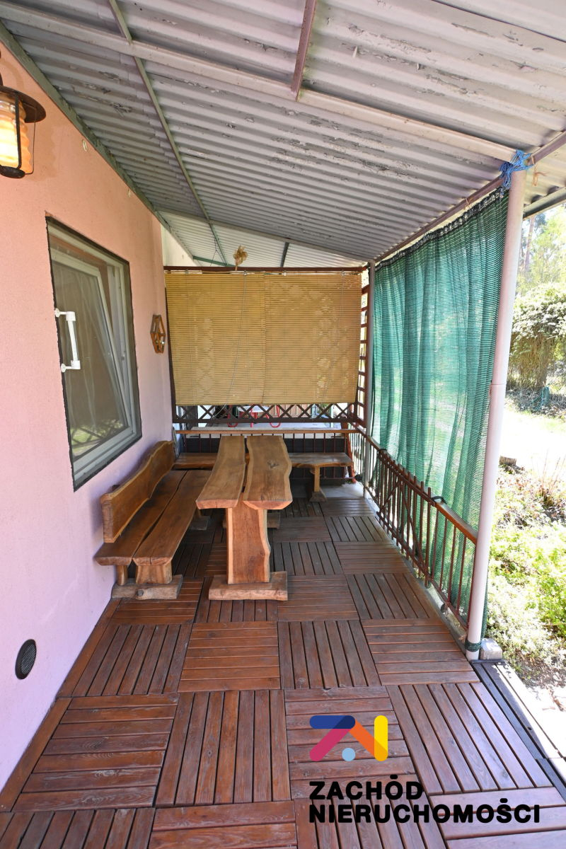 Budynek murowany z cegły, dach kryty papą, okna PCV, na podłogach panele i płytki, kuchnia umeblowana i wyposażona- pozostaje wyposażenie widoczne na zdjęciach. Na tarasie posadzka betonowa kryta płytami tarasowymi.