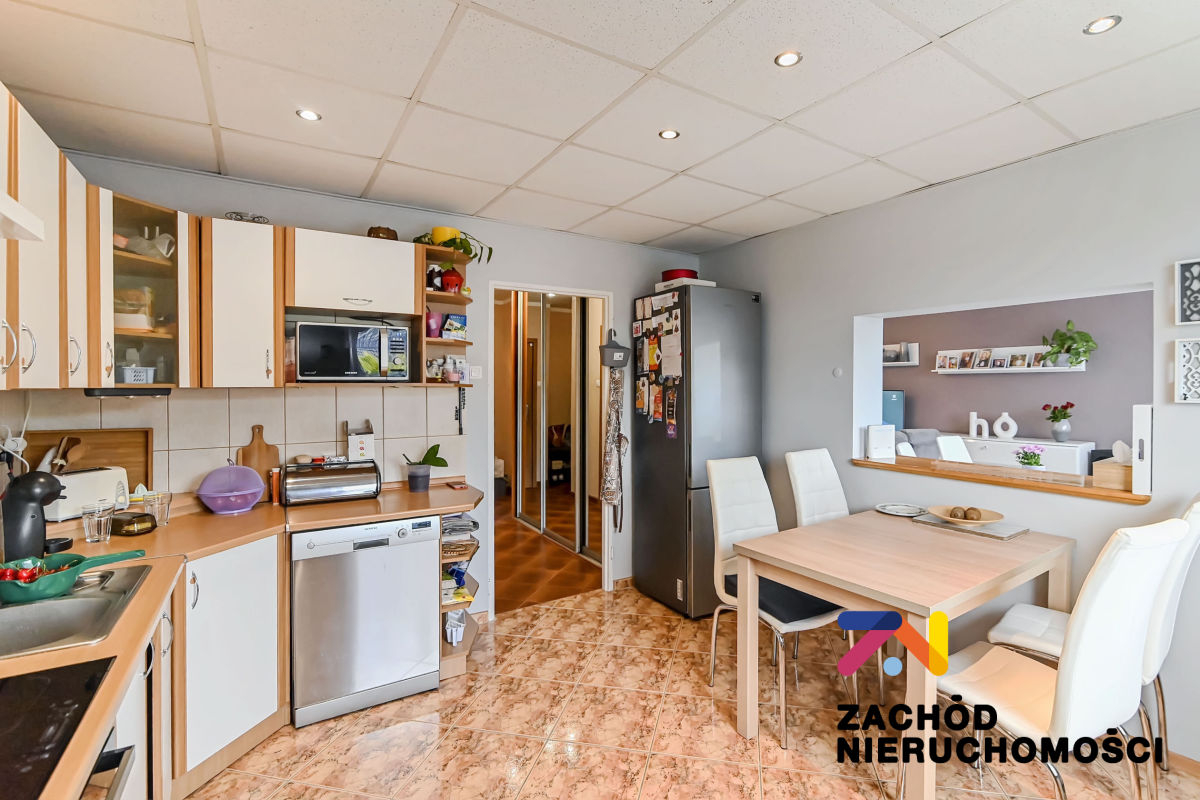 Oddzielna, ustawna kuchnia w kształcie kwadratu, z dużym prześwitem (oknem serwisowym) do salonu - bardzo praktyczne rozwiązanie ułatwiające komunikację i serwowanie posiłków,