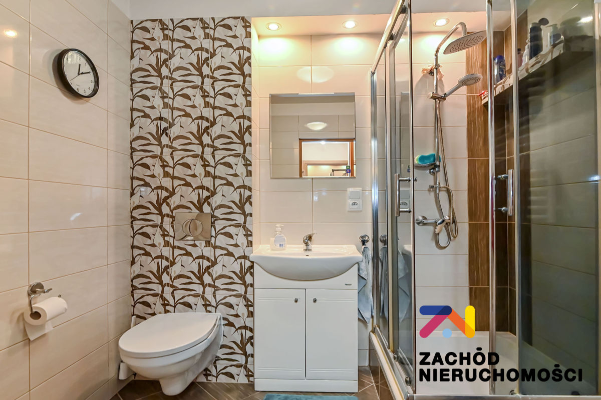 Łazienka z kabiną prysznicową i WC,