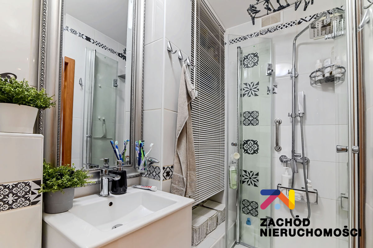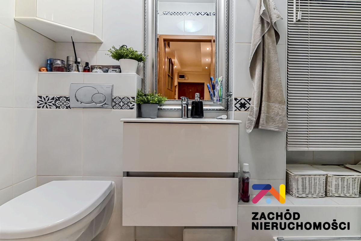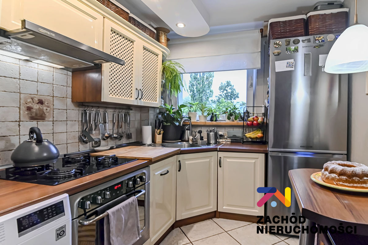 Budynek ocieplony po termomodernizacji. Zamontowany monitoring na bloku. Mieszkanie wykończone. Na podłogach panele i płytki w zależności od pomieszczenia. Okna PCV. Ściany gładzone i malowane. W łazience kabina prysznicowa, umywalka, wc. Kuchnia umeblowana i wyposażona w piekarnik elektryczny, płytę gazową, lodówkę, zmywarkę, pralkę i liczne pojemne szafki. W przedpokoju 2 duże szafy w zabudowie oraz w sypialni 2 duże i pojemne szafy w zabudowie.