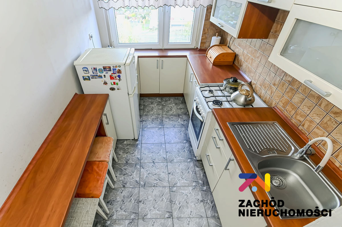 Mieszkanie jest przestronne i jasne. Oba pokoje są duże i ustawne. Okna plastikowe PCV wychodzące na dwie strony świata. Bardzo dużym atutem jest balkon z panoramą na miasto i las. Meble widoczne na zdjęciach w większości pozostają na wyposażeniu.