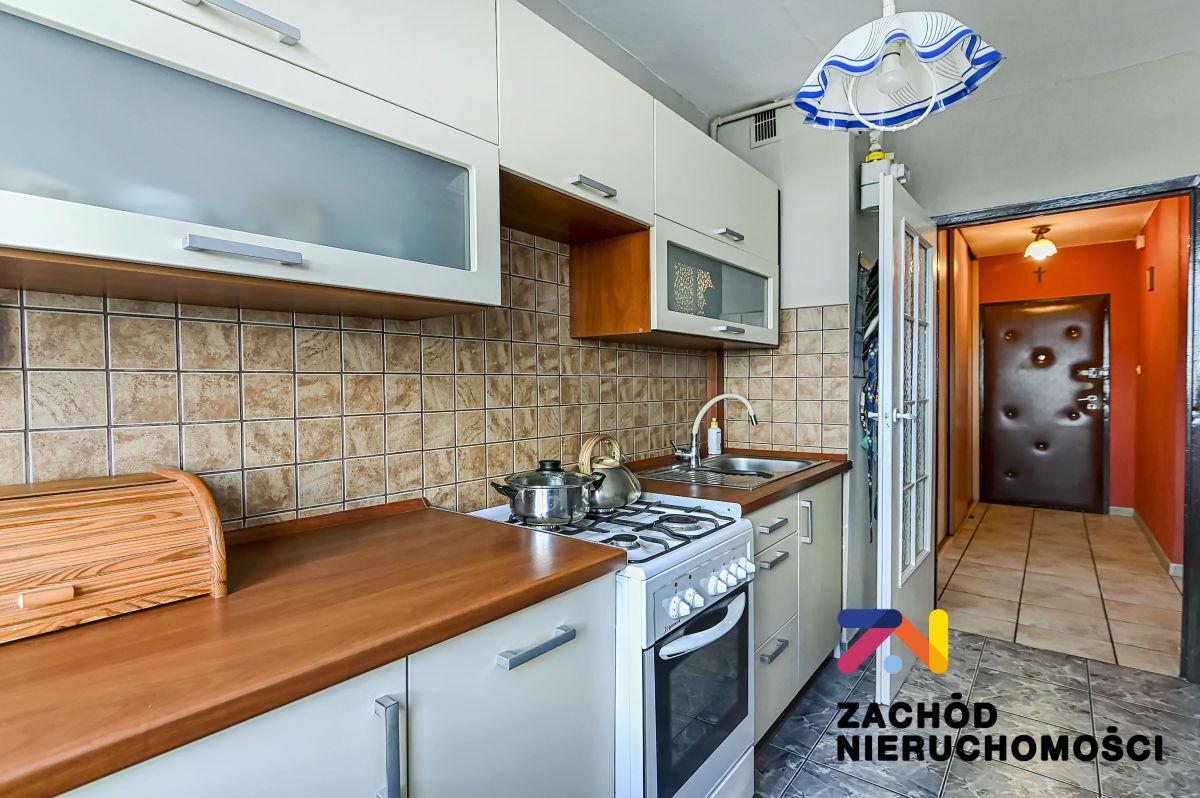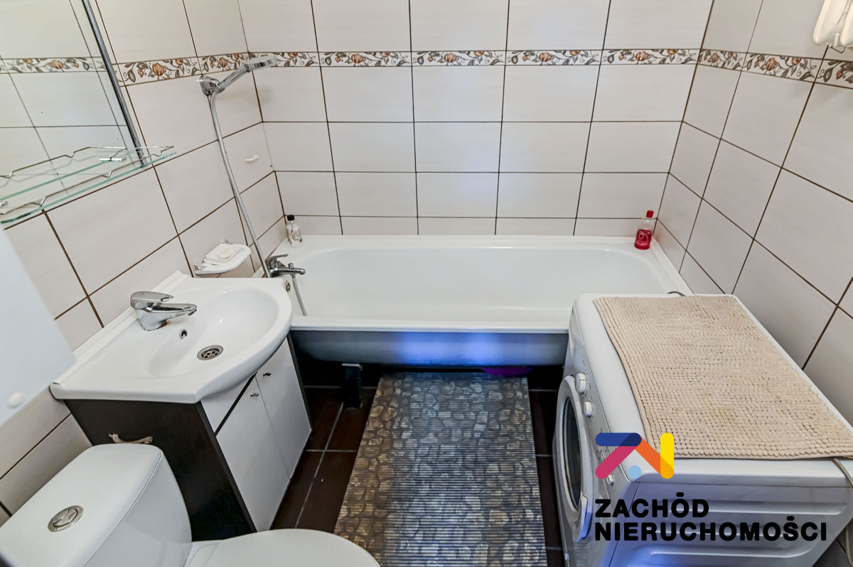 W przedpokoju mieści się duża szafa przesuwna oraz komoda. Łazienka wyposażona w wannę, WC, pralkę pozostaje na wyposażeniu). W oddzielnej kuchni piekarnik, gazówka.