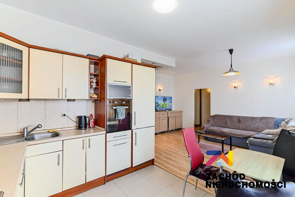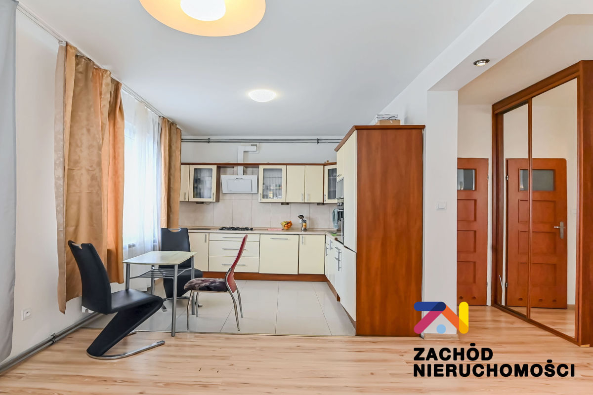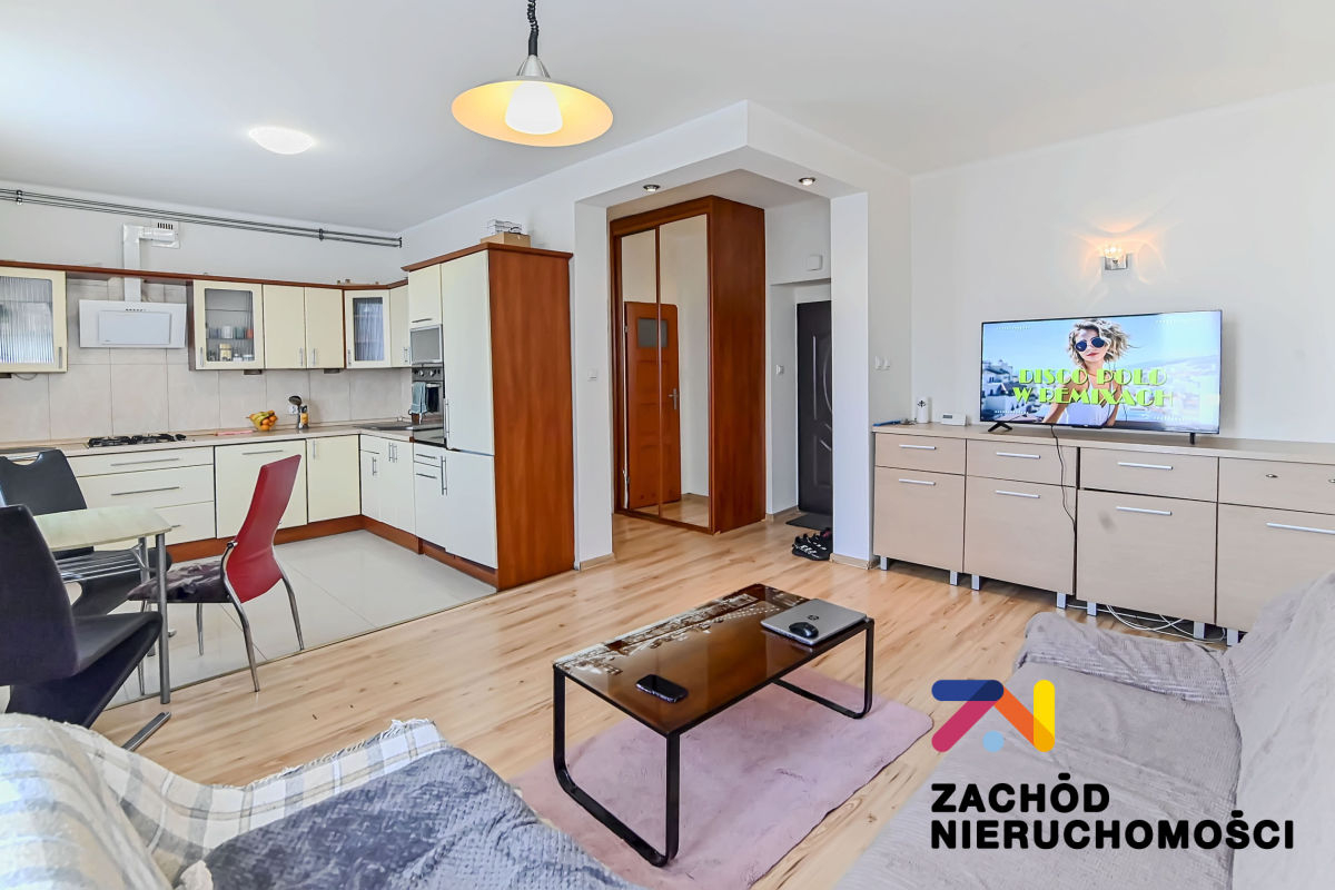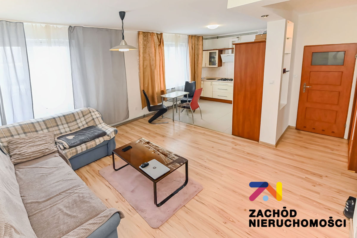 Lokal składa się z dwóch jasnych, wygodnych pokoi, z czego salon połączony jest z funkcjonalnym aneksem kuchennym, tworząc przytulną przestrzeń do życia i spotkań.