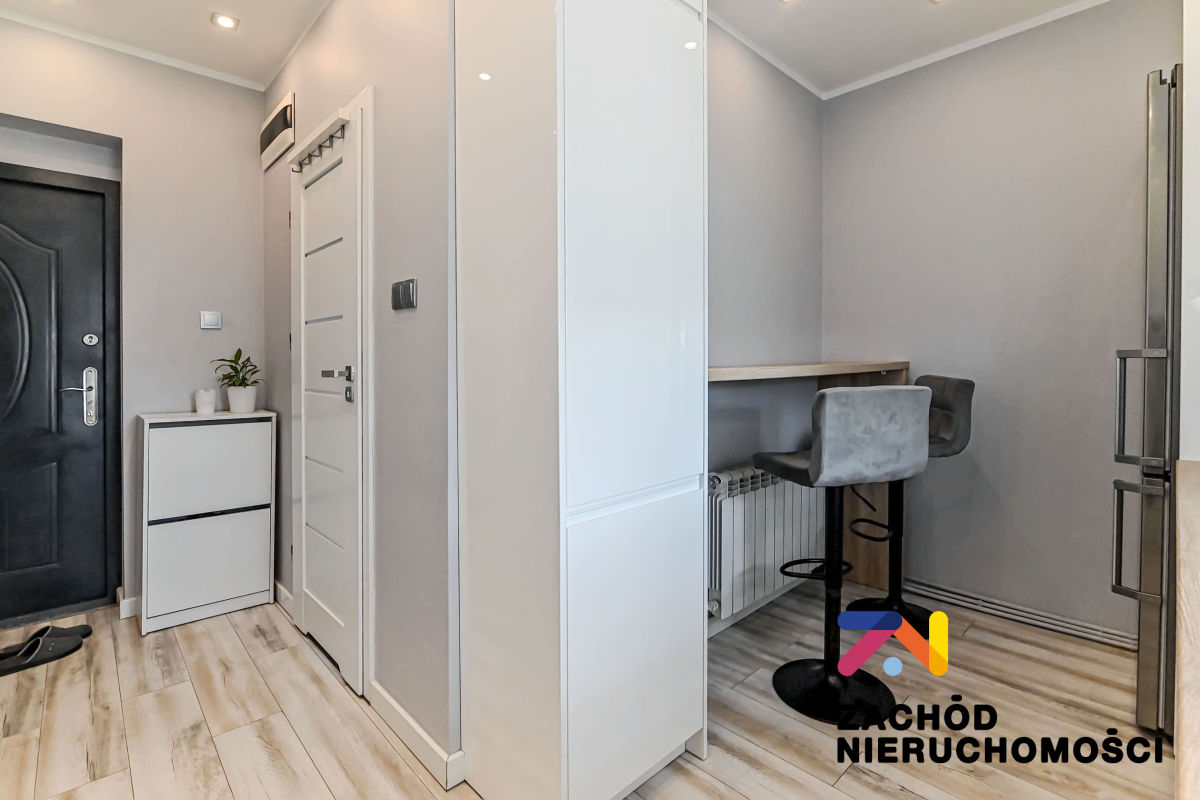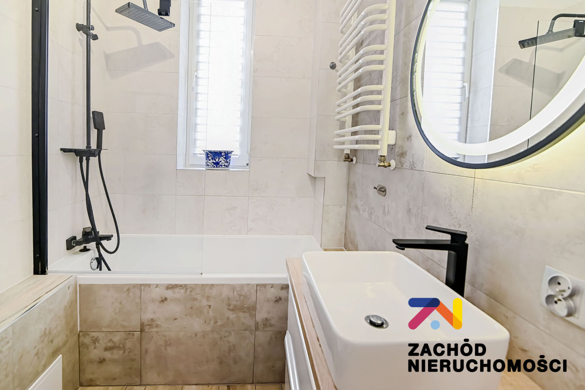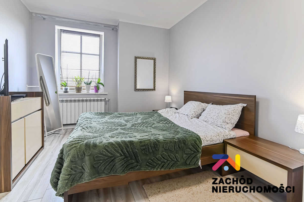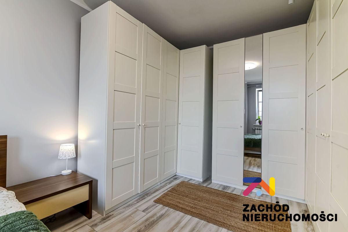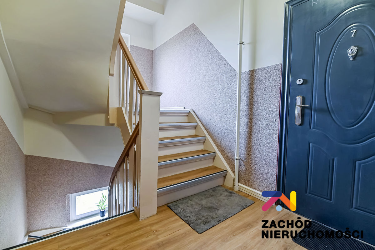 Budynek w dobrym stanie technicznym, wybudowany z cegły. Mieszkanie po generalnym remoncie, ściany gładzone i malowane, na podłodze panele i płytki w zależności od pomieszczenia. Okna PCV z roletami wewnętrznymi. Kuchnia umeblowana i wyposażona: lodówka, piekarnik, płyta gazowa. W łazience wanna. W sypialni wydzielona część na garderobę- szafy PAX.