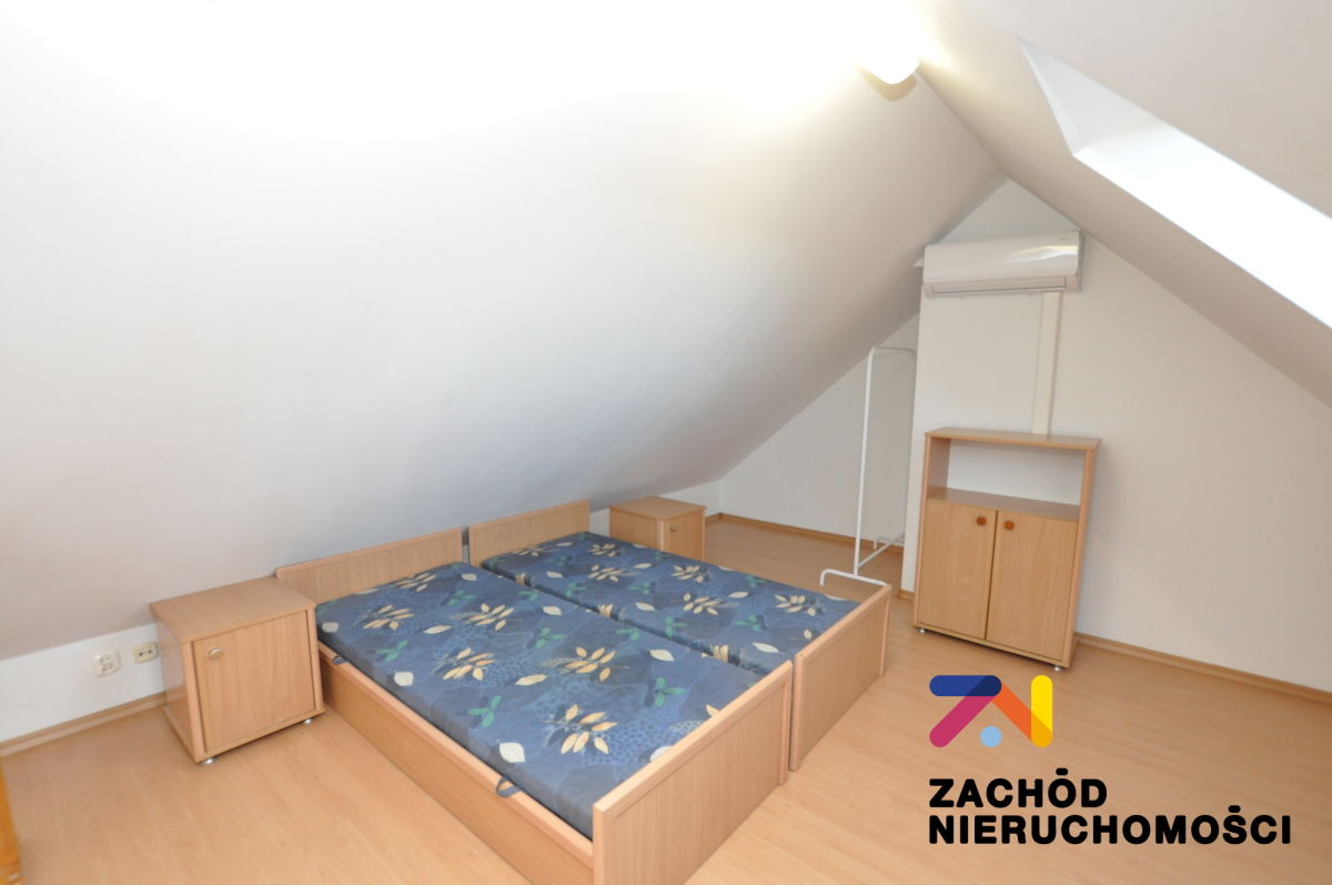 Kuchnia umeblowana i wyposażona w nową płytę indukcyjną marki Bosh, okap, lodówkę oraz stół i krzesła. Łazienka wyposażona wWC oraz kabinę prysznicową. W pokoju dziennym nowa kanapa z funkcją spania, szafa, komoda, stół, biurko i dwa krzesła. Antresola wyposażona w dwa łóżka z materacem, dwie komody, stojak na ubrania. Wszystkie meble widoczne na zdjęciach pozostają na wyposażeniu.