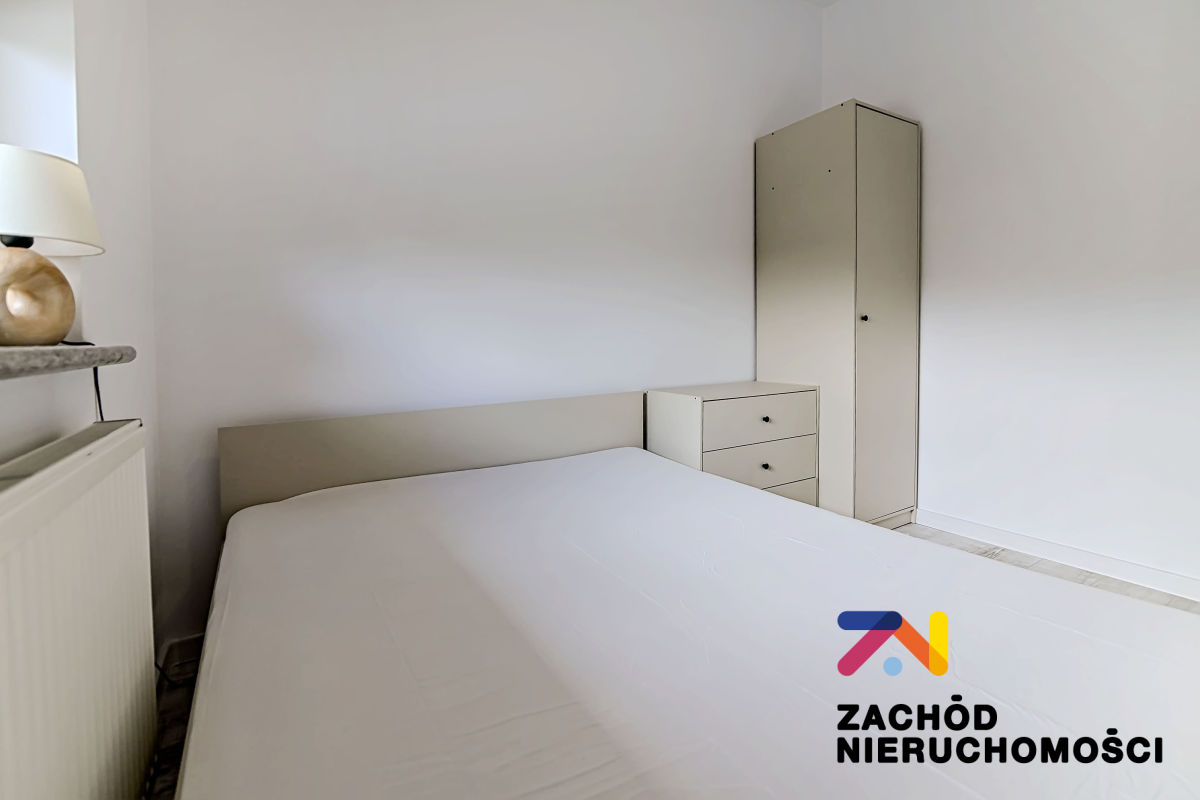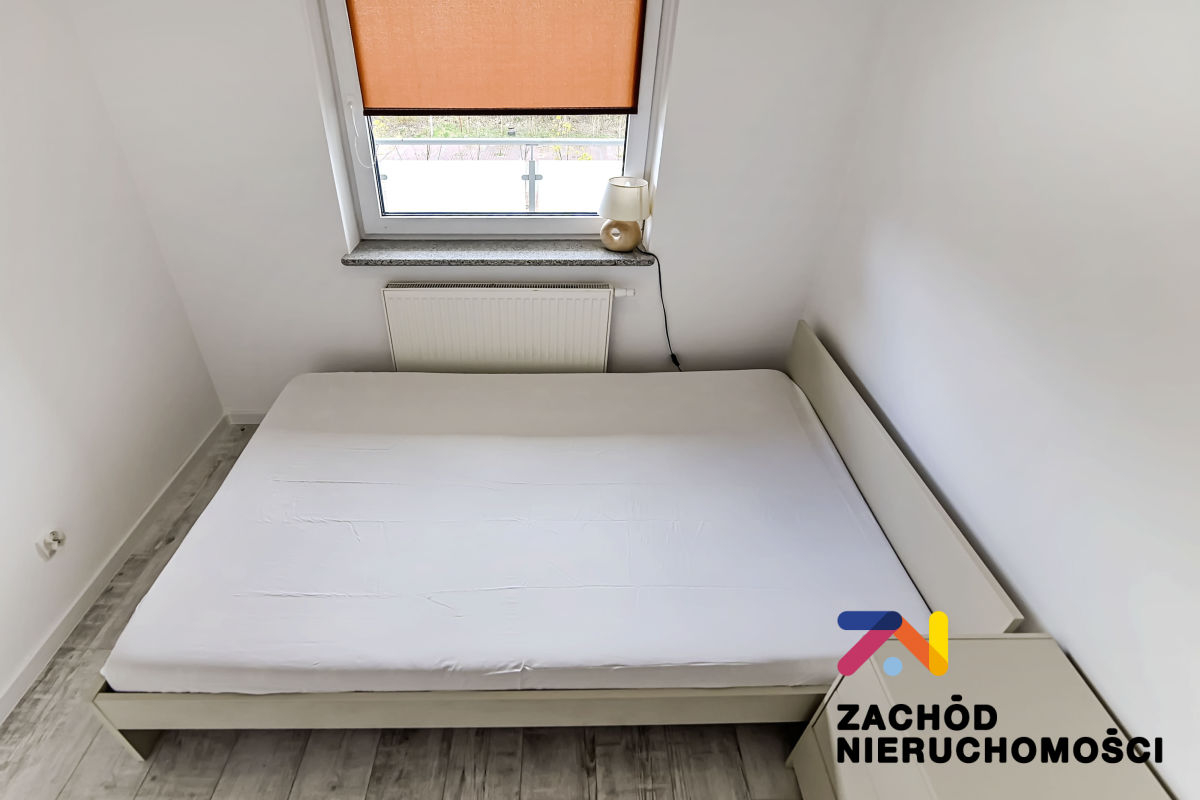 W sypialni znajduje się wygodne łóżko o szerokości 140 cm oraz pojemna szafa.